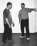 Should someone approach you suspiciously and ask you the time, for a light, directions etc. to establish whether it is a set up and if they have an accomplice waiting behind you, take a large forward diagonal step, usually to your right but depending on situation, ending in a position where you can view your previous rear flanks and can keep an eye on the frontal threat. From this safer position you can, while keeping your eyes on the subject offer your watch for him to read the time or generally answer his question from a position where he must turn to attack thus increasing your reaction and evasion time.